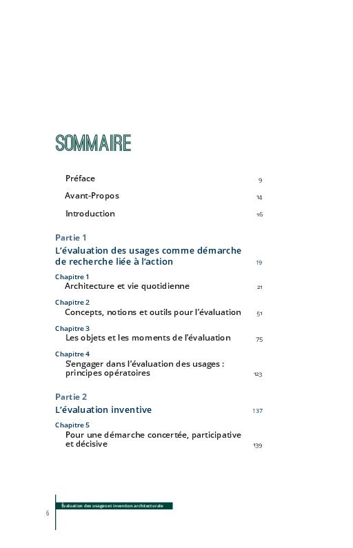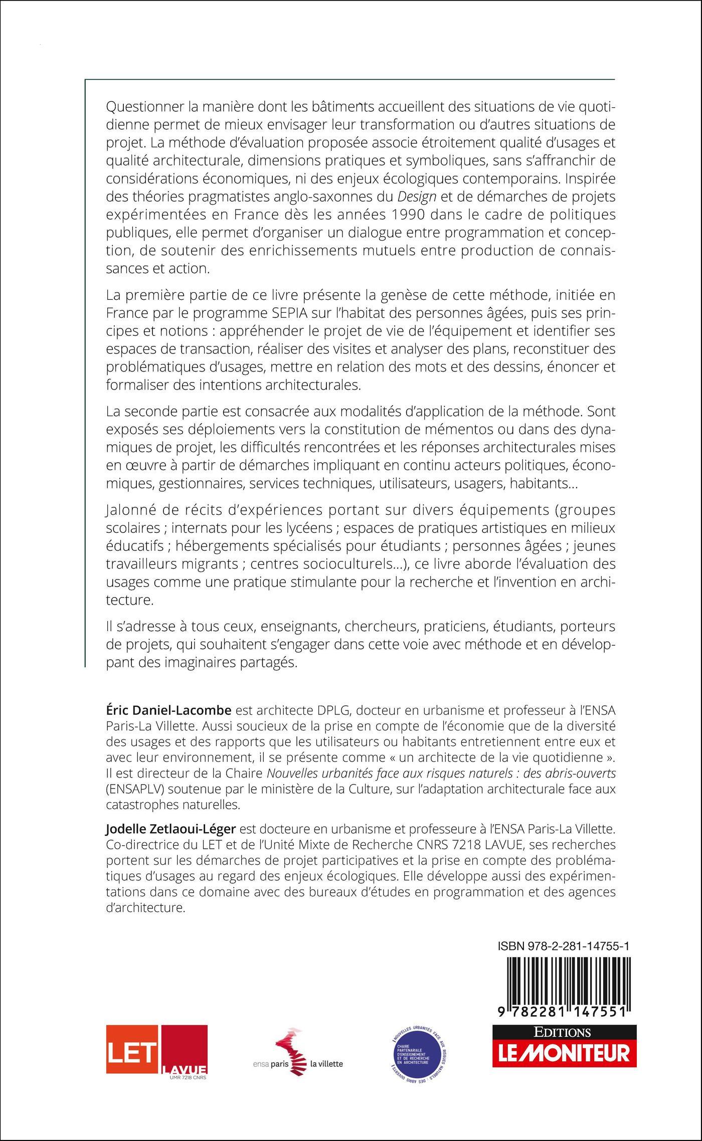 Jalonné de récits d’expériences portant sur divers équipements (groupes scolaires ; internats pour les lycéens ; espaces de pratiques artistiques en milieux éducatifs ; hébergements spécialisés pour étudiants ; personnes âgées ; jeunes travailleurs migrants ; centres socioculturels…), ce livre aborde l’évaluation des usages comme une pratique stimulante pour la recherche et l’invention en architecture.